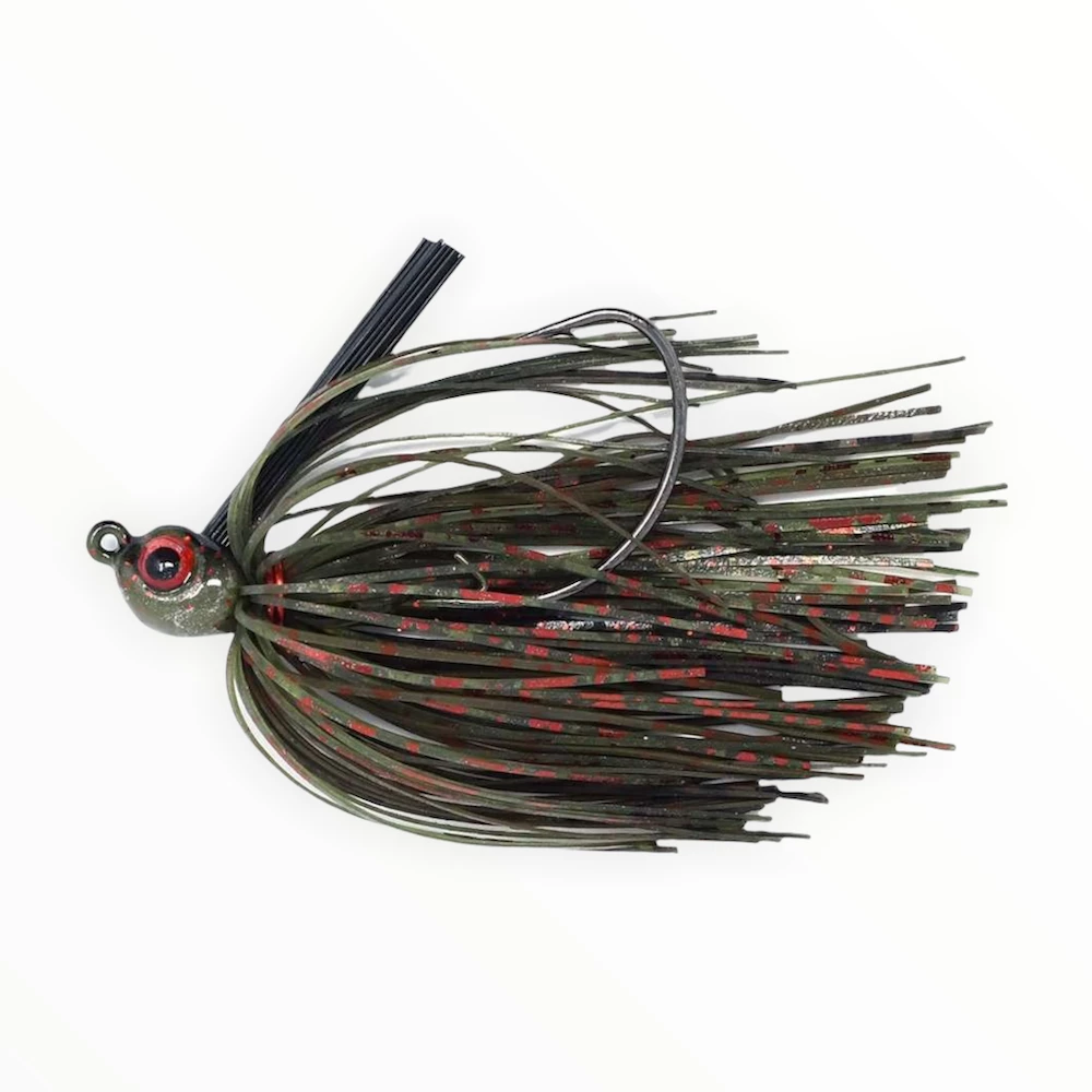 If you’re the type that likes to tie on a jig and go to work covering shallow structure, wood, weeds, docks etc., you have found what you need. Everything from the hook eye to the trailer keepers are designed to keep you in the water more. These jigs skip, swim and plunge into and out of any cover. Featuring Mustad Ultrapoint Mega Bite hooks, 3D eyes and what we believe are the best paint and skirt colors made. Try one and you’ll be hooked as well as the fish.