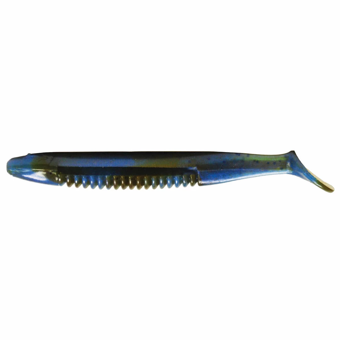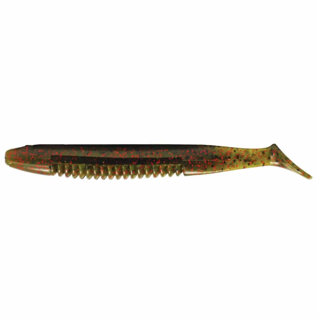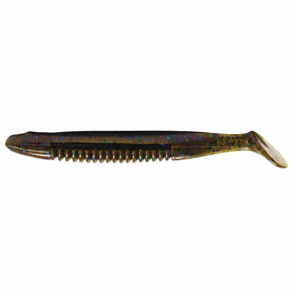 The Dean Rojas Cane Thumper is now available in three sizes 3.5″, 4″ and 5″. The Cane Thumper has large ribs on the bottom with hook pockets on the top, bottom, and sides. The body style and tail design give the Thumper a side to side action when swimming. All sizes excel when fished with a weighted hook, jighead, swim jig, vibrating jig, or A-Rig.