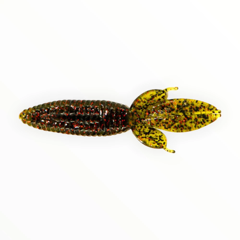 Most anglers are flipping or pitching Muskrats around heavy cover. The Muskrat can easily accommodate a screw-in weight with a big 4/0-5/0 hook, unlike a Smallmouth sized bait. The top section and bottom section of the Muskrat have a little additional plastic to make using a bigger hook easier. This bait is also fantastic for smallmouth bass rigged on a jig head. The Muskrat is a killer bait for bedding bass as well. It seems that a big female cannot stand a Muskrat in her spawning bed.