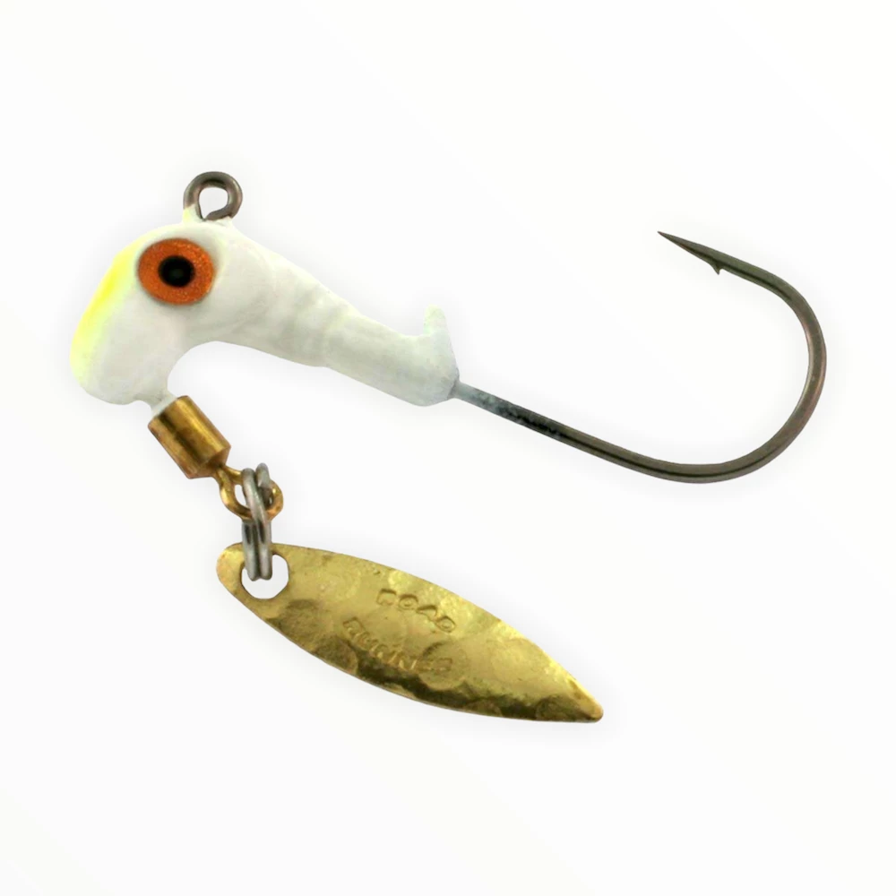 Pro Series Heads feature a gold-colored willow blade, perfect for deeper or swifter waters. Note: the 1/16th oz has a larger size #2 Bleeding Bait® hook instead of the usual size 4. The 1/8th oz has size #1. 11ct
