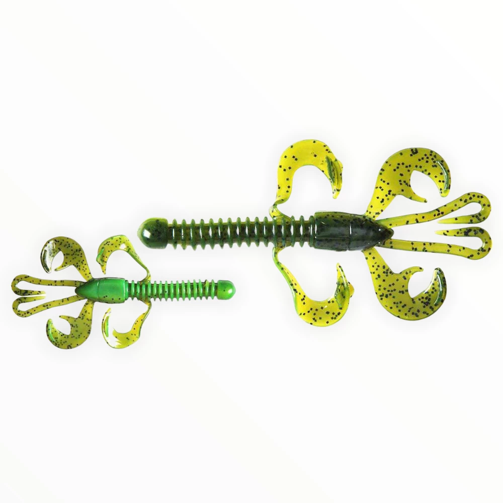 When resting on the bottom on a Texas rig or as a jig trailer, the Undertaker’s unique composition causes it to stand straight up with the claws rising in a defensive craw position and the appendages moving with the current.