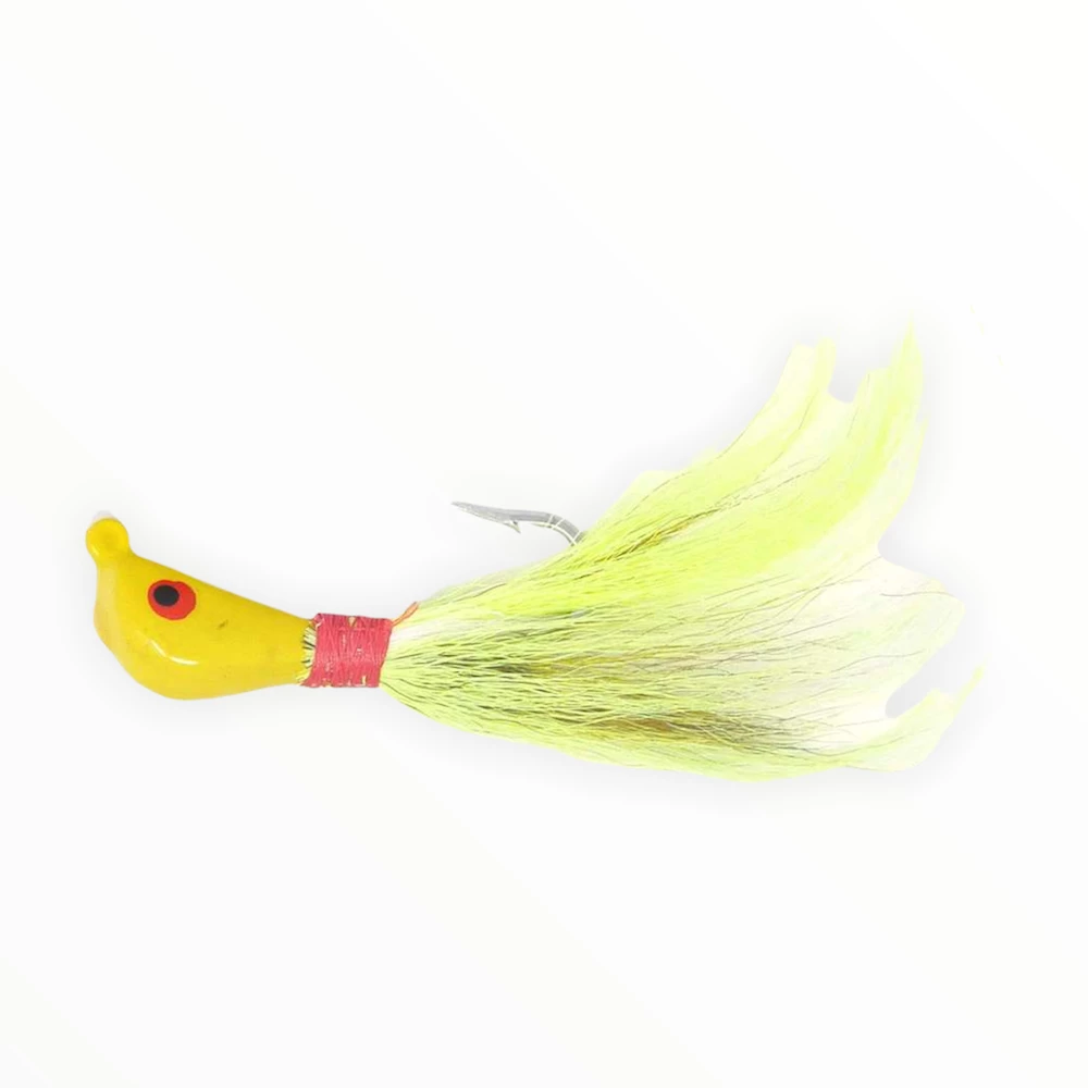 Hand-tied 1oz bucktail Striper jig with an O’Shaughnessy, all-water hook.