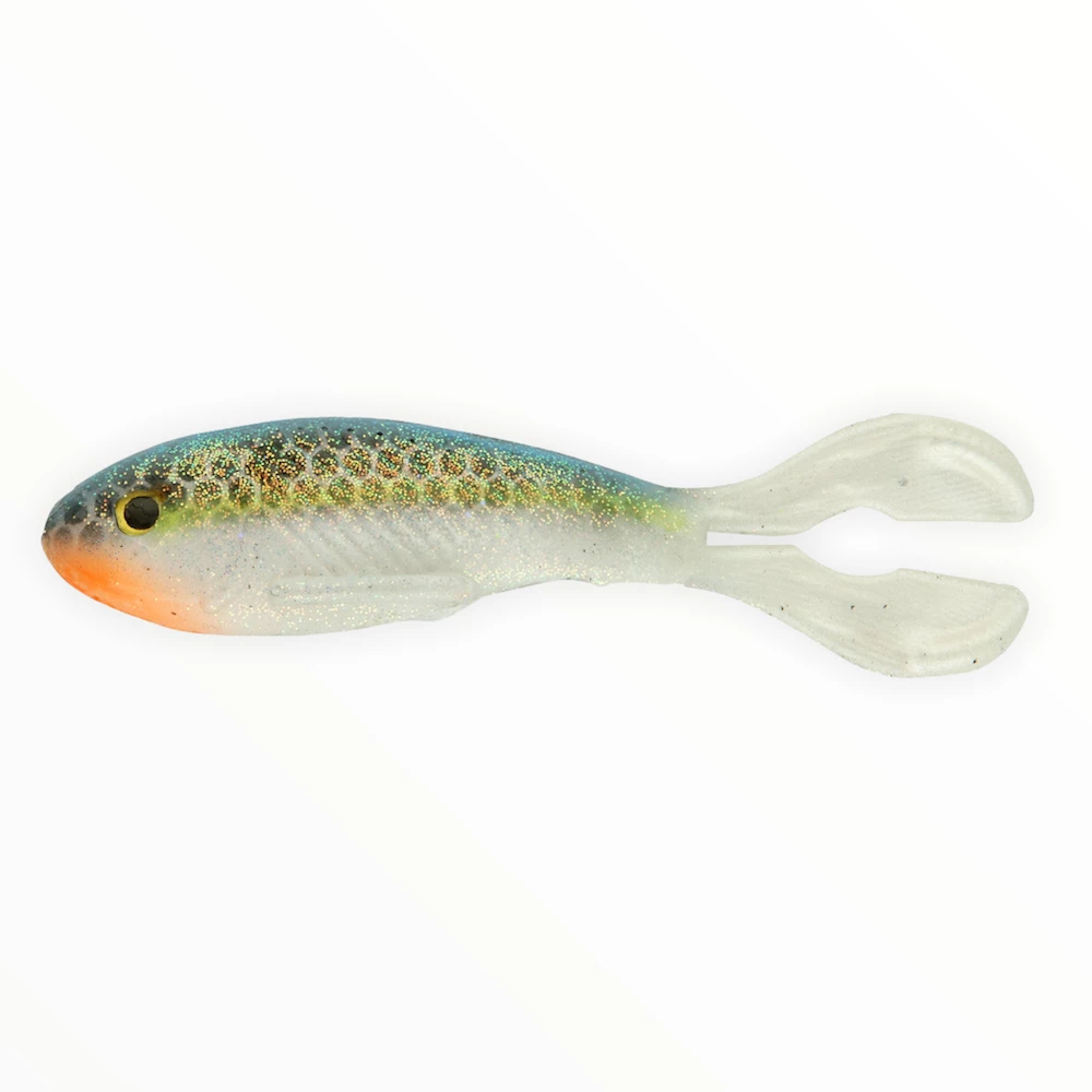 The Real Deal Shad is our newest design that can be used for a number of techniques. It features a realistic size and profile combined with a unique new tail design. This new tail design is very different than traditional boot or paddle tail style minnow shapes. The Real Deal Shad has a natural swimming action where the tails kick in an alternating fashion when retrieved. It was designed to be rigged in a vertical presentation on a jig-head or a weighted hook. The swimming action along with the realistic profile and hand-painted colors make it look like the real deal. Our three professional anglers have all tested it with great results. The Real Deal can be used with a jig-head, a weighted hook, A-rig, or nose hooked for drop shot rigs. (5 Pack)