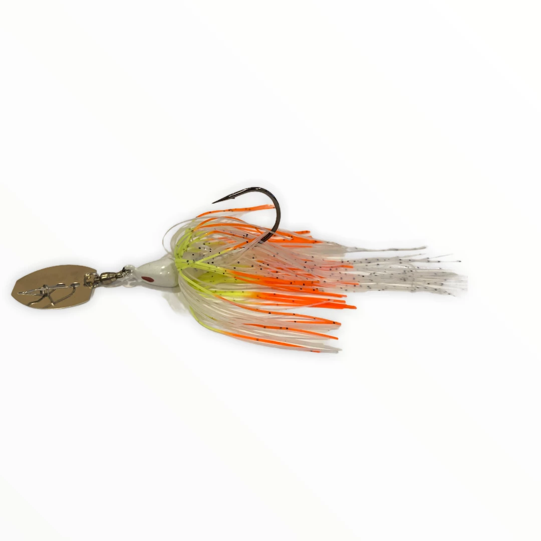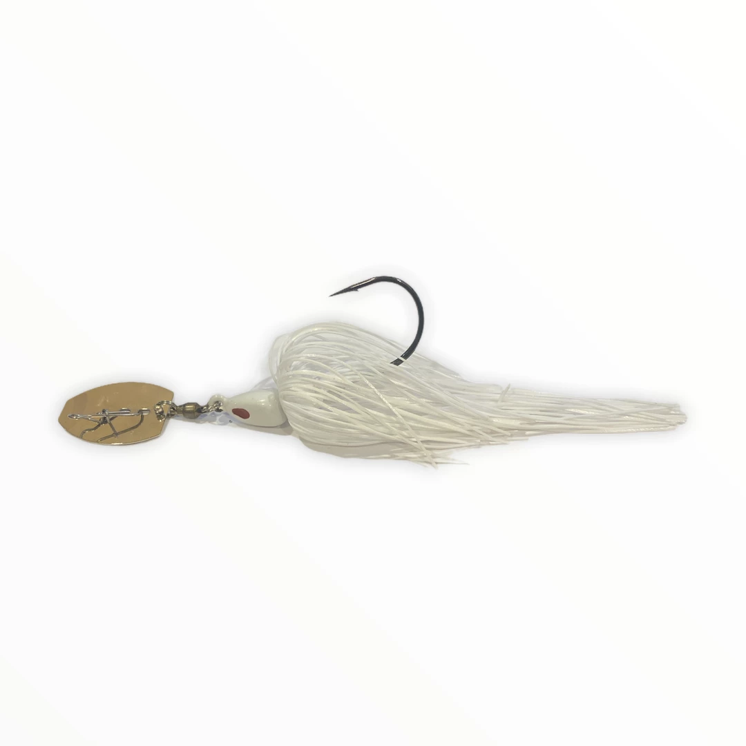 The Rapture Vibrating Jig is the latest offering from Omega Custom Tackle. Keeping in line with Omega’s reputation for building the highest quality baits in the industry the Rapture is packed with innovative design features that set it apart from its competitors. Through extensive testing and evaluation the Team at Omega has developed the perfect vibrating jig. The design hinges on the Made in the USA Sampo ball bearing swivel that connects the blade to the head. This key feature has multiple attributes that trigger violent strikes and keep fish hooked up. The unique connection induces Rapture’s unique “hunting action” that fish can’t resist with a simple “stop and pop” retrieve. Once the fish is hooked, the 360-degree rotation of the swivel aid in keeping giant bass hooked up all the way to the boat. The Rapture features a Mustad heavy wire, ultra-sharp 5/0 hook that delivers excellent hook penetration. Omega is known for its life-like bait imitating skirts and covers the full gamut of bass forage. We have also recently added a weedless version built of the same weed guard used in our Signature Swim Jig. The fiber guard can be tailored to your preferred stiffness etc by simply trimming a few strands to “lighten” it up.
