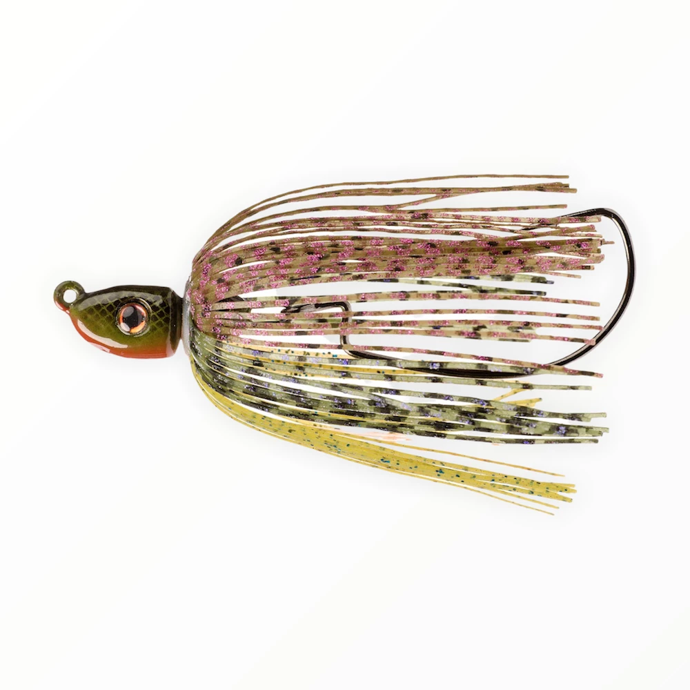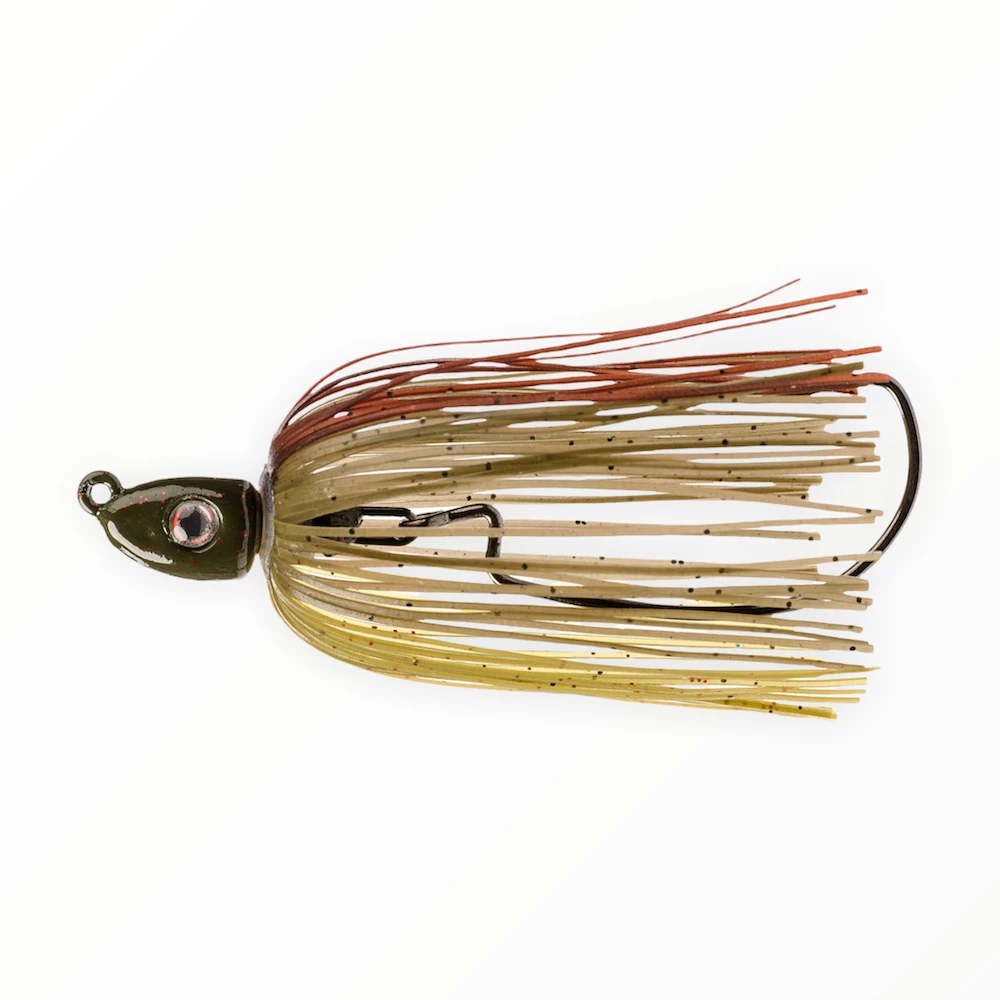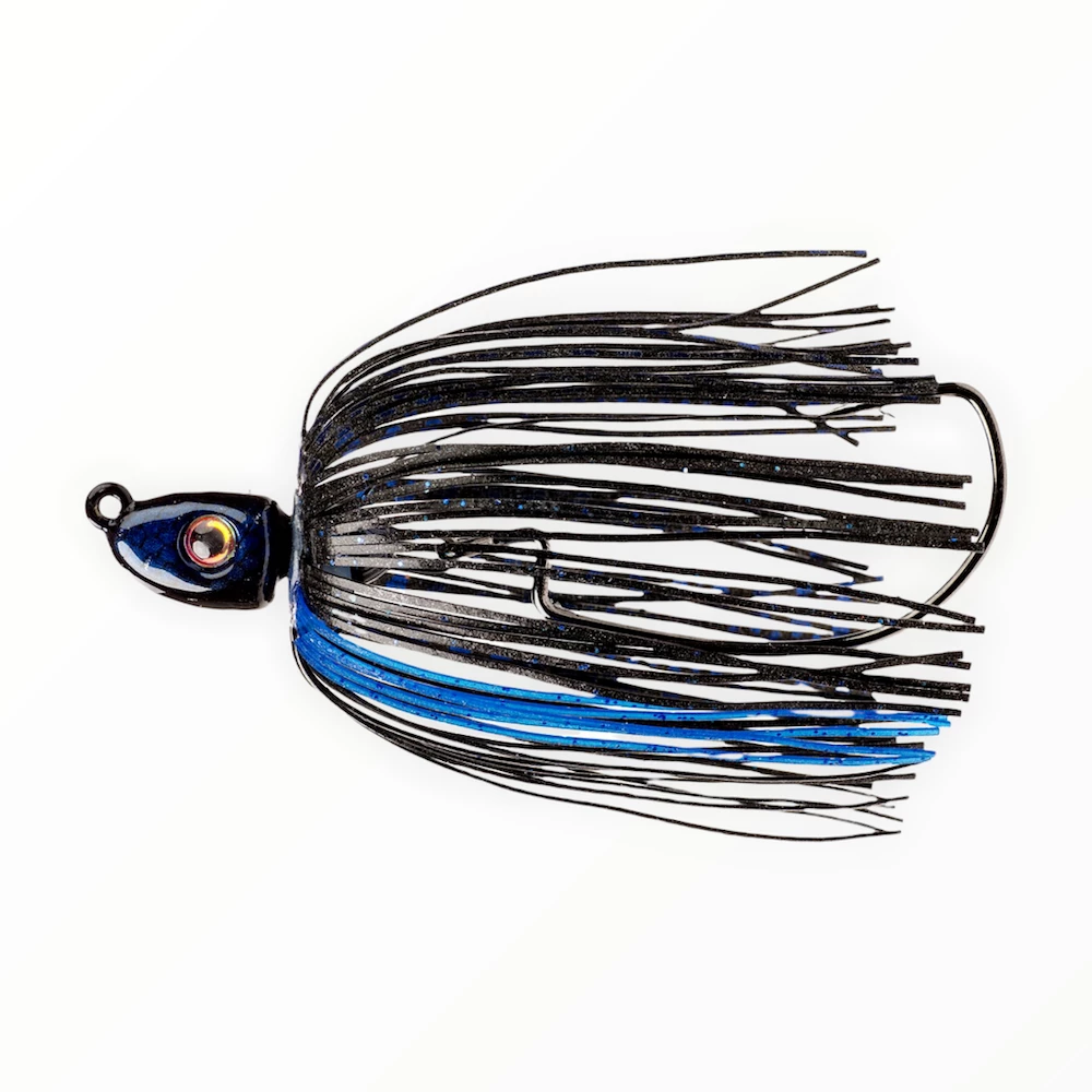 Look closely at the Strike King® Swinging Swim Jig, and you’ll see that unlike other jig styles, it’s not built on a fixed hook. Instead, it has an eye joint that allows the hook to swing freely as the jig moves through the water, creating a supple swimming action beyond that of any other jig. The sleek, perfectly balanced swimming head was designed by the Strike King Pro Staff to slice through the water with ease, causing the Perfect Skirt® to ripple and shimmer along; simply add your favorite plastic trailer to the swinging hook, and see what Tour Grade “maximum action” can do for your catch rate! Black nickel Needlepoint hook.