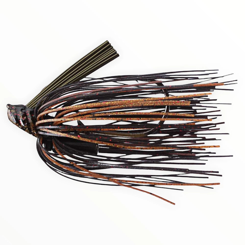 The Adrenaline Flippin Jig has a custom-built oversized 30-degree hook that allows for better hook sets and larger weed guard that helps to make the bait more effective in cover. The head is designed to allow the rattle to come in contact with cover and the bottom so the rattle is more effective.