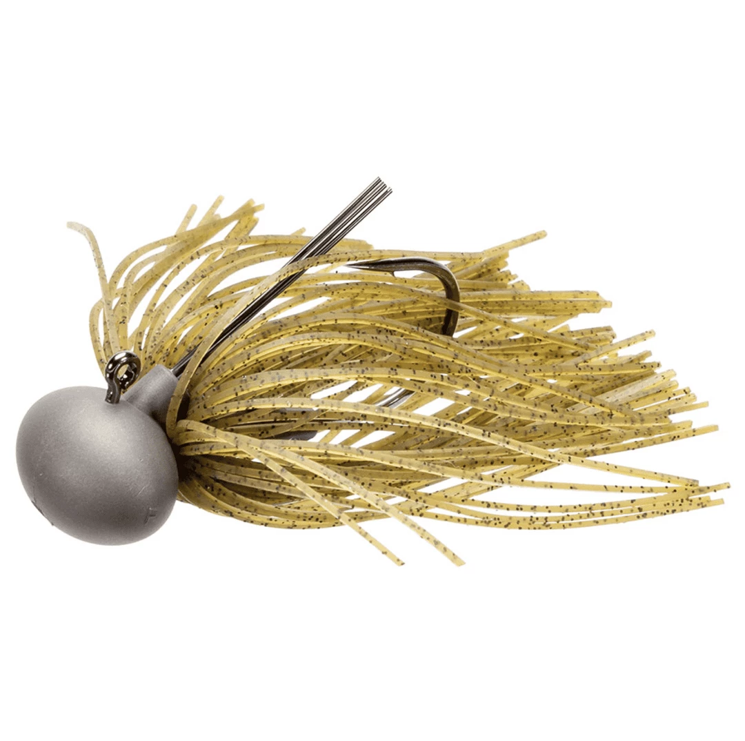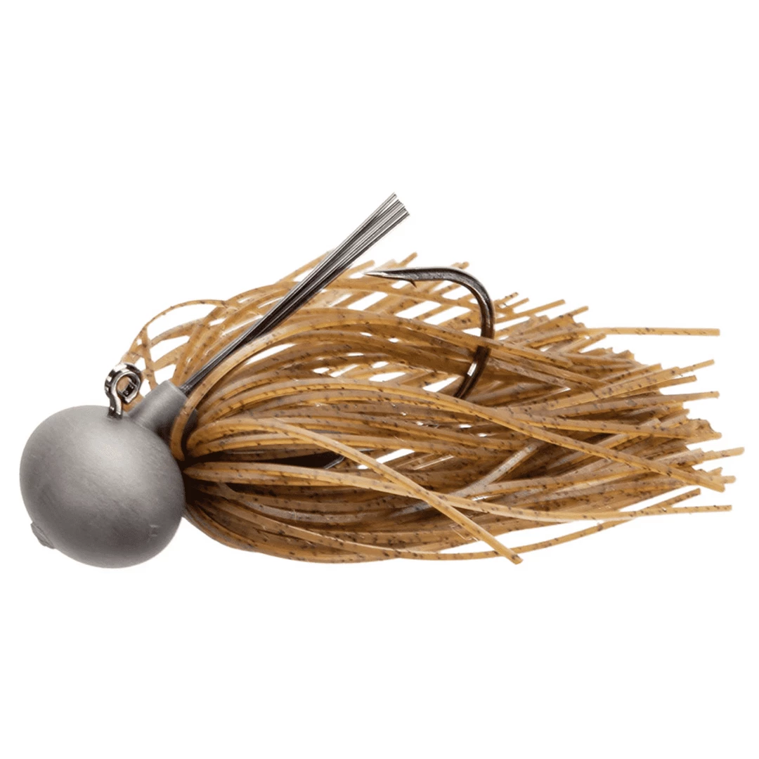 The Keitech Model II Tungsten Football Jig is designed for deep water jig fishing. The tungsten compound head is 30% harder than lead and extremely sensitive. The hand tied 100 strand skirt is produced from Keitech’s exclusive SR-40 silicone. This super soft, fine cut material provides remarkable life-like action. The 10 strand fiber weed guard is hand glued to ensure perfect alignment to the custom Gamakatsu 2/0 hook, providing snag resistance without sacrificing hook setting ability.