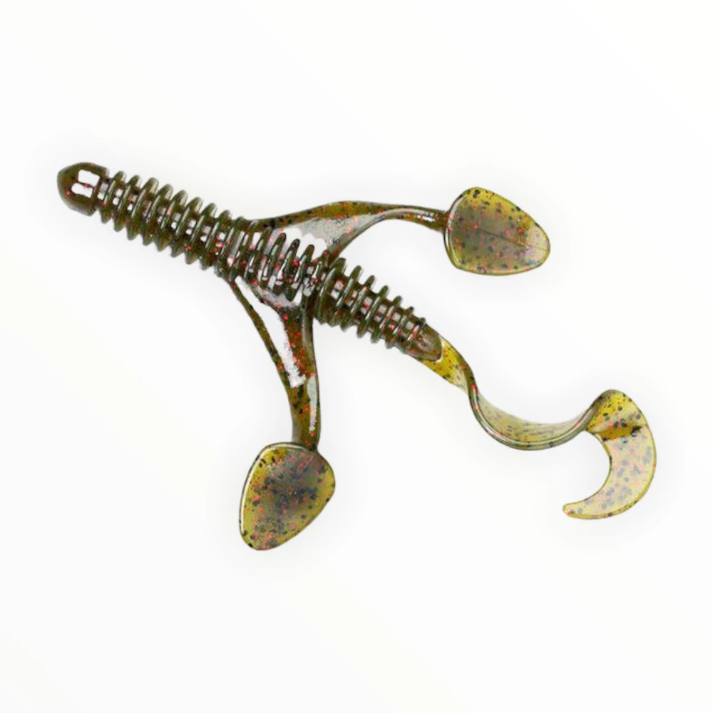 The Lake Fork Tackle 5″ Fork Creature is an irresistible combination of a curl tail grub, a ringed worm, and a wing worm. Its large, ringed body emits air bubbles for a breathing action. The large curl tail sets up a natural swimming action. The two spade wings create an irresistible vibration. The Fork Creature is a versatile lure that is productive when fished on a Carolina Rig, Texas Rig, or as a trailer on a jig head. The action of the 5″ Fork Creature is best when the lure is on the fall, setting both the spade wings and the large curl tail into motion.