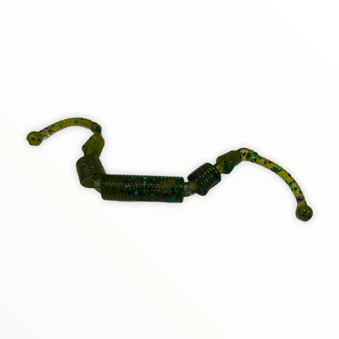 With a segmented body on each end of the Hyper Whack’n Worm, this worm gives off a quivering tail action to entice the most high pressured bass to strike. Fish it wacky style, flick shake style or drop shot it.