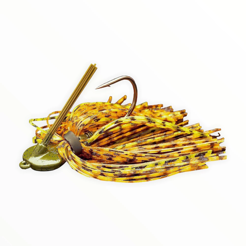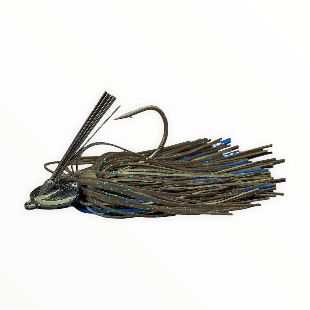 This jig stands out as unique and versatile as Skipping Jig and swimming jig. It is proven to come over and through most any cover a bass lives in.