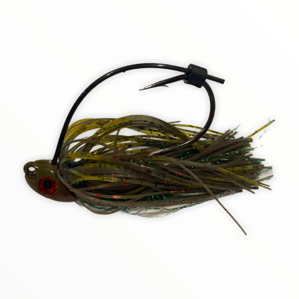 Delivering a whole new level of weedlessness, the M-Pack Lures Swim Jig is perfect for fishing around grass, brush, and all other types of snaggy cover. It features M-Pack’s Structure Guard weedguard, which unlike traditional weedguards, deflects snags without collapsing. It covers the hook point, and when bass bite down, it is designed to roll to the side, exposing its super sharp Gamakatsu 5/0 black nickel hook for solid hooksets.