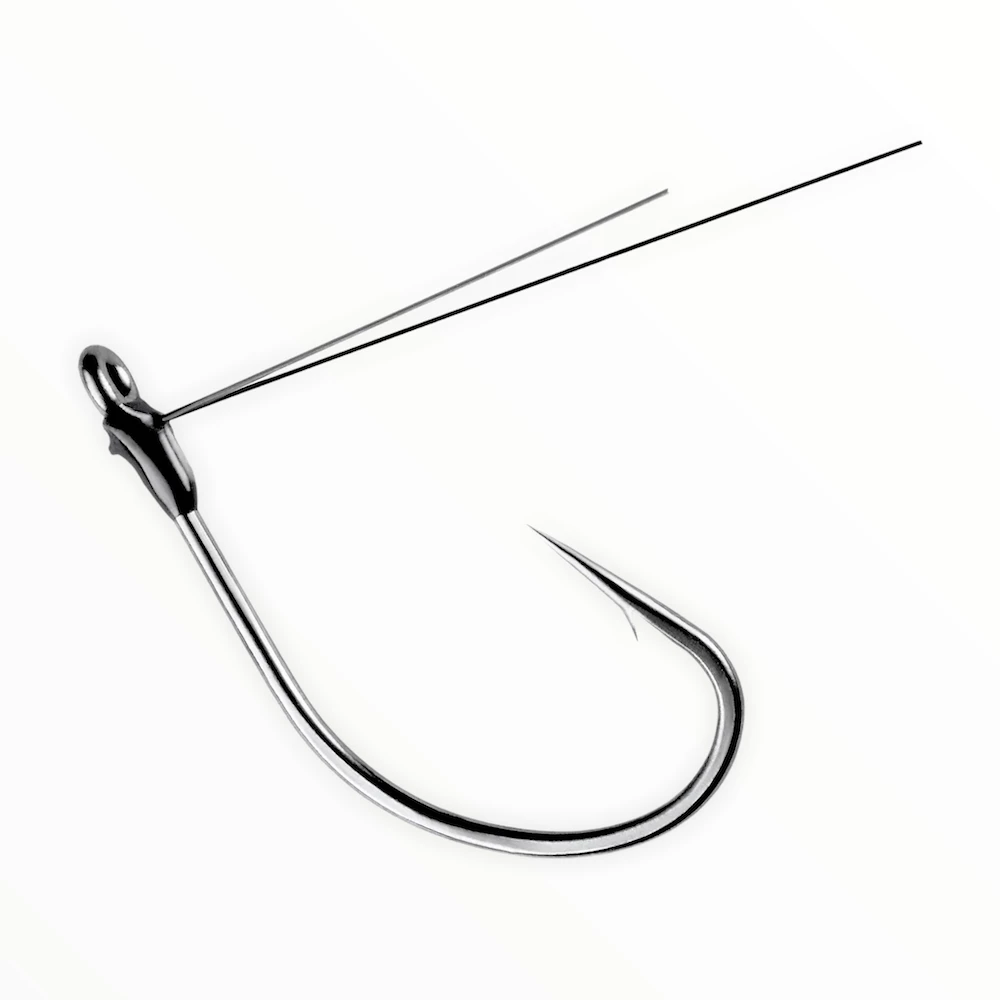 Designed for Neko Style fishing, this hook comes in a standard version and a weedless version with Titanium weed guards. Hook includes a long shank with an offset point for better hook sets. Features Silky Gray finish Super Needle Point, and a 100% closed eye for braid applications.