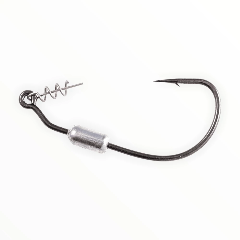 This Weighted Twistlock™ hook employs the same hook as the 5132 Twistlock™, but also features a non-movable weight attached to the shank. Designed for both fresh and saltwater fishing. The hook’s added weight helps to sink or swim the bait into the strike zone. With its Twistlock™ Centering-Pin-Spring, baits can be permanently secured by inserting the pin in the center of a soft plastic, which can then be screwed on the Twistlock™ coil spring to rig perfectly every time! Ideal for weedless style fishing without having to add a separate weight. Great for skipping or pitching into deep cover. Open gap allows for more positive hook sets. Features include a 30° eye-bend, XXX-strong forged shank, Super Needle Point, and black chrome finish.