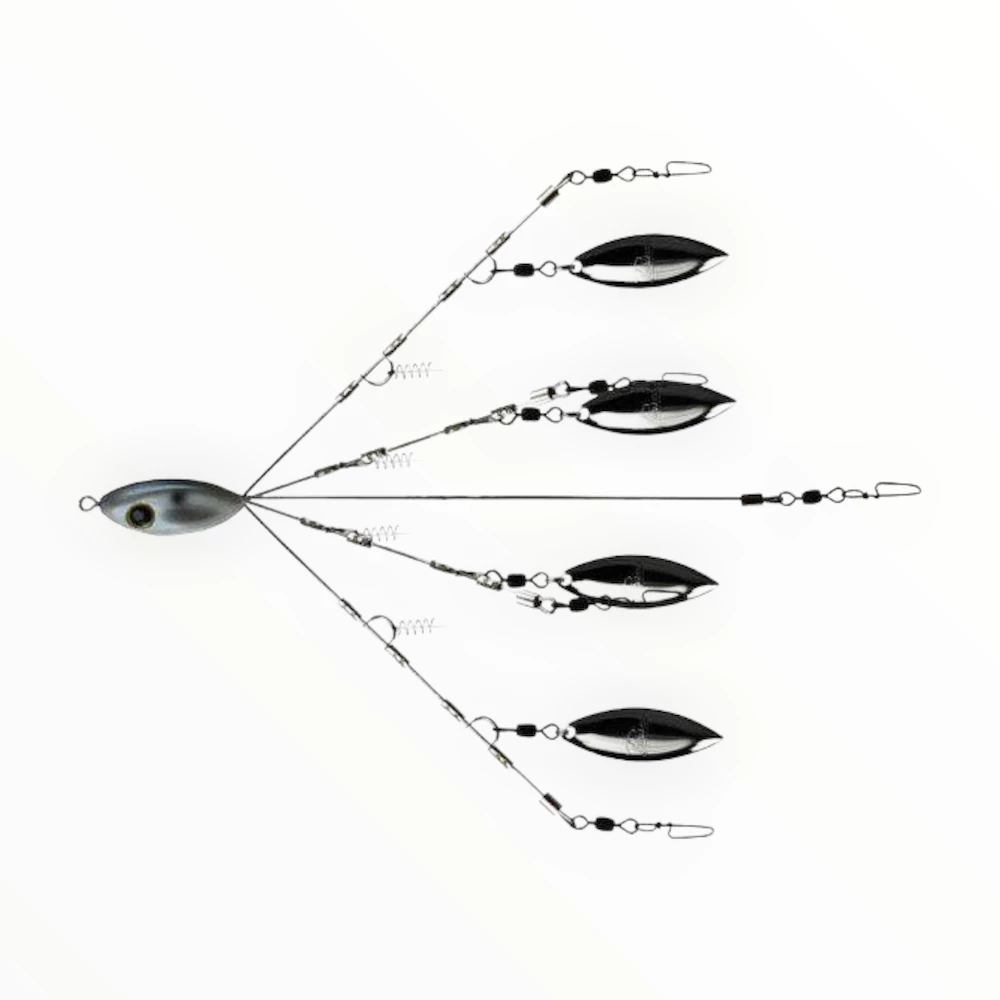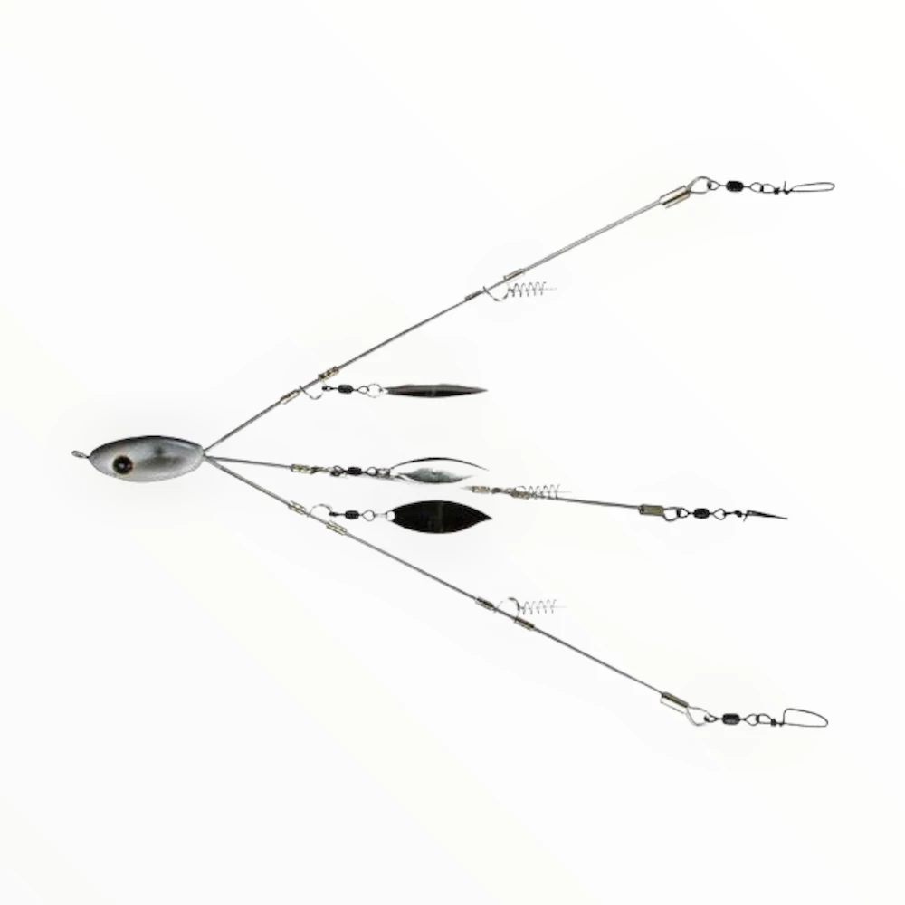 The Picasso Heavy Duty Series are specifically designed for rigging with larger size swim baits. The .063 heavy gauge spring wire will stand up to both salt water and fresh water species of fish. Constructed with a durable light weight high-impact resistant plastic head,160# test imbedded nose swivel to prevent line twist and beefed up 100# test snap swivels to secure your swim baits.It also features the markets only slide up sleeve that allows quick change out of any damaged swivels.