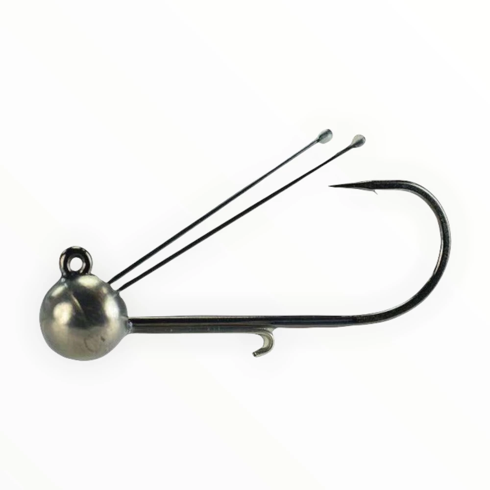 The Tungsten Double Wire Ball Head allows you to work your way through rocks, wood, and grass with the ultimate in sensitivity due to the 97% solid tungsten head. The position of the Nickel Titanium guards keeps you from getting stuck even if the head rolls on its side. Ideal for a variety of plastics such as the popular Keitech Paddle Tails. The Sticky Sharp Gamakatsu hook penetrates fast and holds up to the “Toads”