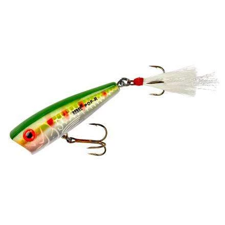 The Rebel Pop-R has been the standard by which all topwater poppers/chuggers have been judged for more than three decades. This lure won anglers hundreds of thousands of dollars in bass tournaments while it was discontinued. After “The Secret Bait of the Pros” was revealed in a major bass fishing magazine, the Pop-R returned to the lineup and sold more than a million lures the first year. The profile and action of the Pop-R make it a favorite of anglers everywhere. It can be worked quickly across the surface like a panicked baitfish or slowly twitched to mimic a meal that’s almost dead, and every speed in between.