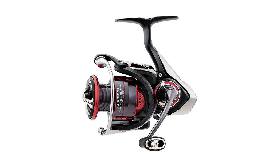 The new Fuego LT series of spinning reels, state of the art fishing tools that define Daiwa’s commitment to the LT Concept of lighter, tougher material. With conventional, heavier spinning reels, long hours of casting and retrieving can fatigue the arms and hands.The Fuego LT housing is light but sturdy, constructed from a Carbon based material. The innovative Magsealed main shaft delivers butter smooth performance while preventing water or dirt intrusion. The technology uses a Mag Oil that can be magnetically solidified similar to a packing on a boat’s propeller shaft. Oil smooth operation as well as a water and impurities barrier makes the design and function unparalleled. The Machined Aluminum handle is ergonomically correct and screws easily into the body. Six ball bearings and one roller bearing combine to create the ultimate in silky smooth operation. If you are looking for an amazing reel packed with high-end design and technology features then the Daiwa’s Fuego LT may be the reel for you.