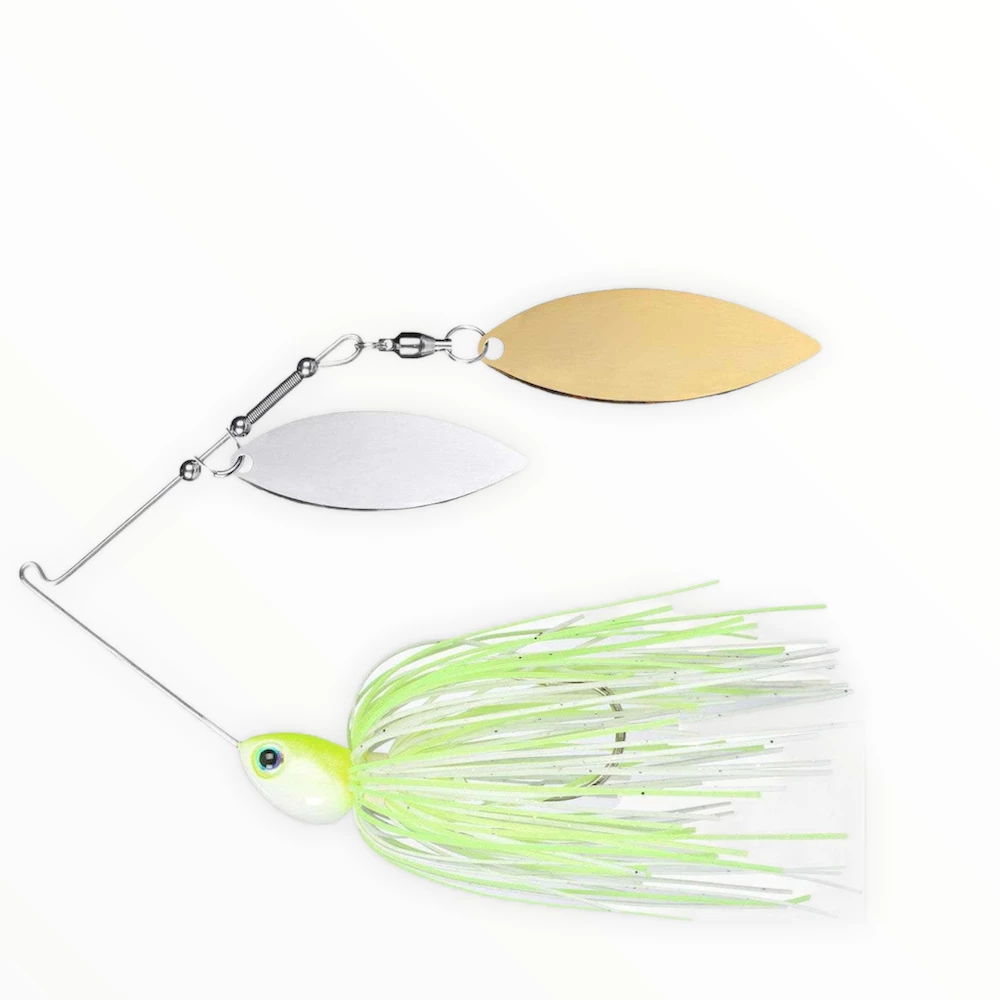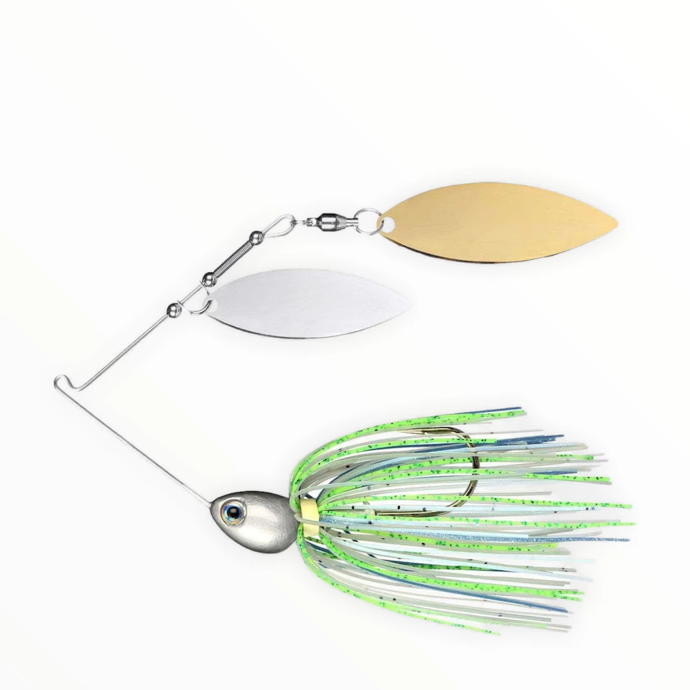 Made in a joint-effort between Santone Lures and Bassmasters Elite Series professional Matt Herren, the Santone Lures M Series Spinnerbait features over-sized blades, highly detailed silicone skirting, and a sticky-sharp Mustad hook. The Santone Lures M Series Spinnerbait has been handcrafted and tuned to track through the water in a consistent, well-balanced flurry. In addition, the mid-sized Santone Lures M Series Spinnerbait has been built with a great deal of expertise and insight to deliver an effective spinnerbait that produces time and time again, and are assembled with the finest components. It’s the perfect fit between our compact Got Five! Spinnerbait and our large-framed Pretender lines.