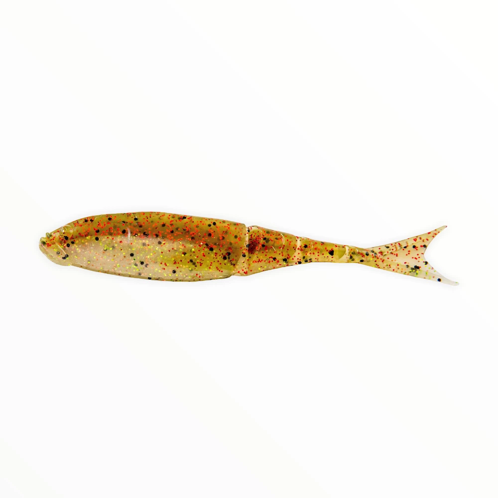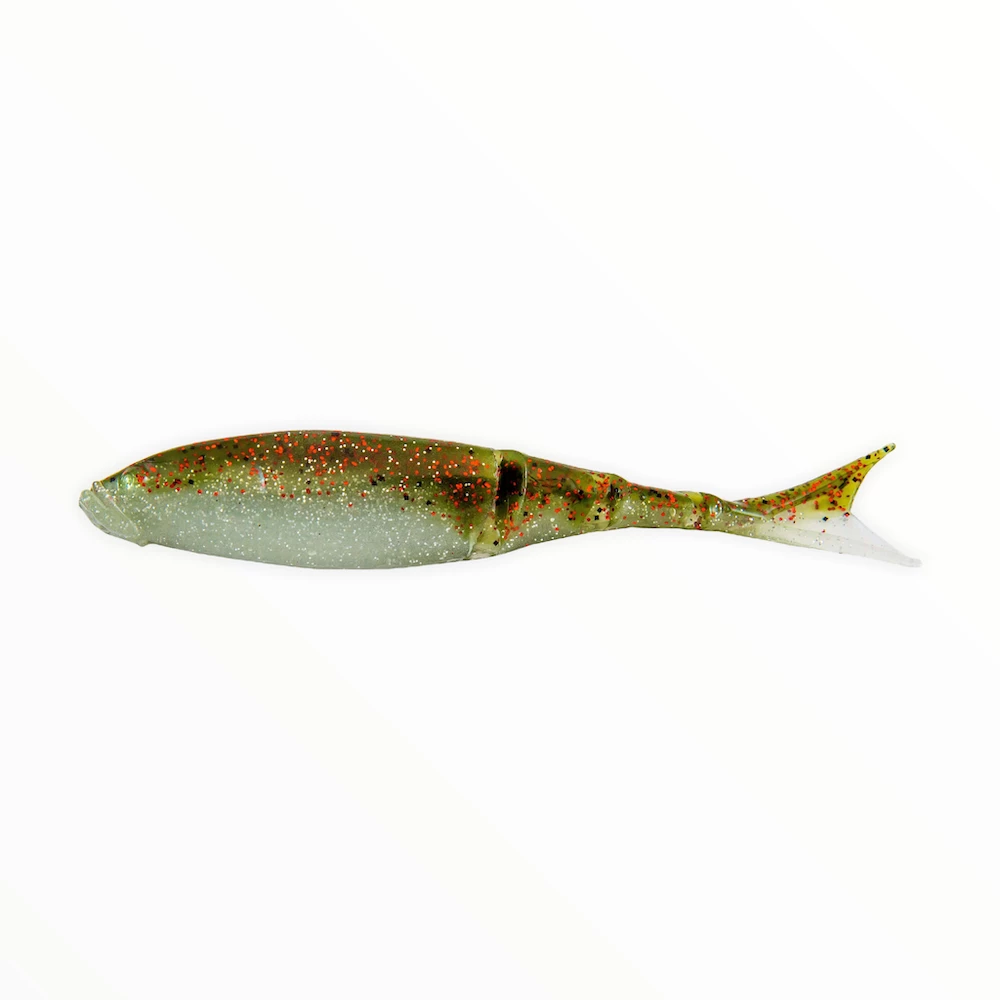 - Segmented fish-shaped body and forked tail create an extremely lifelike baitfish profile