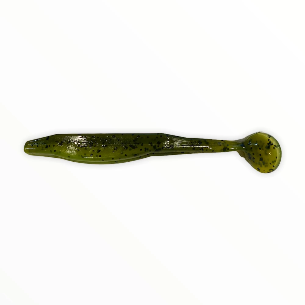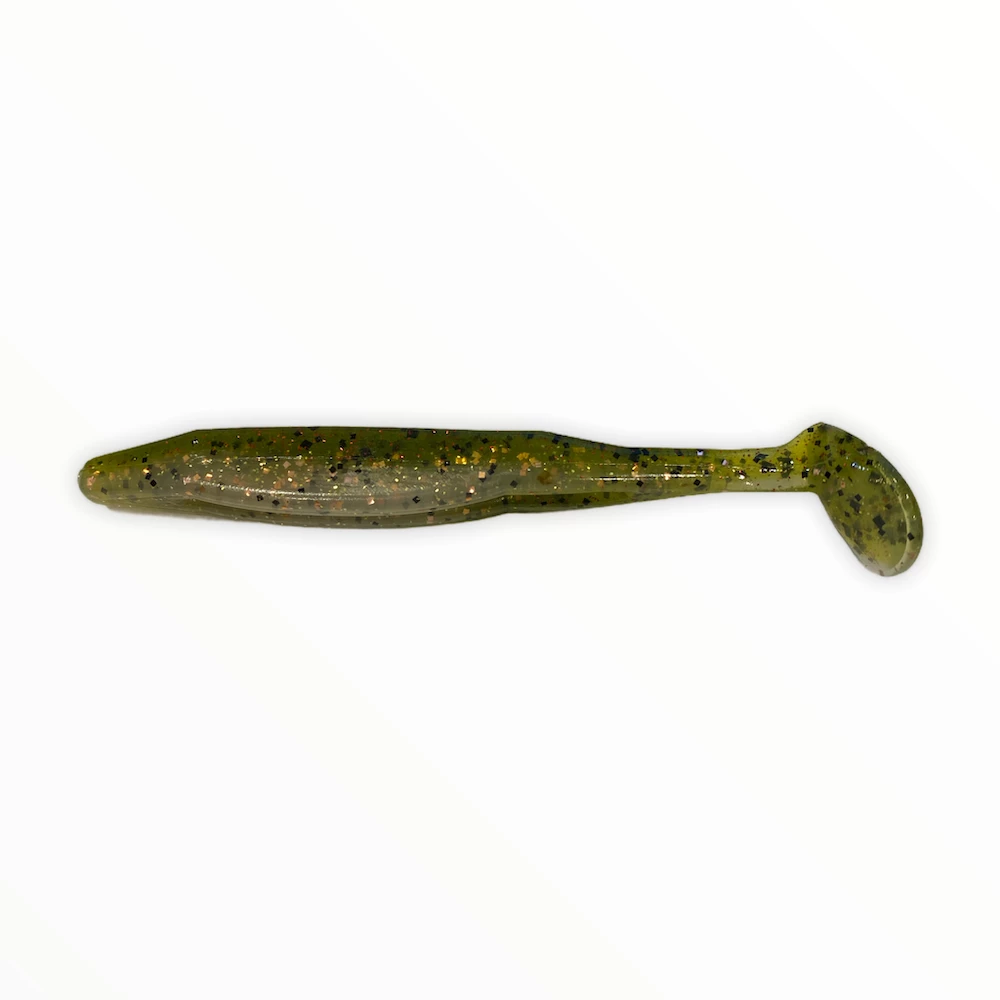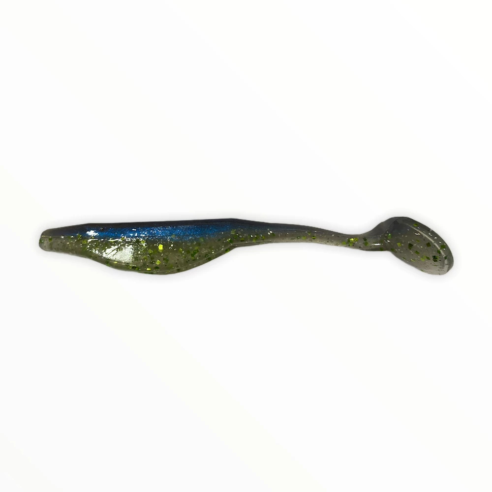 All of the great characteristics of the original Super Fluke, now with a hard-pounding paddle tail. You can fish it like its predecessor, with a swoop and glide motion, or wind it steadily and feel it pulse like a spinnerbait. It’s great by itself or on the back of a swim jig or vibrating jig, where it calls fish from a distance with its sizeable acoustic footprint.
