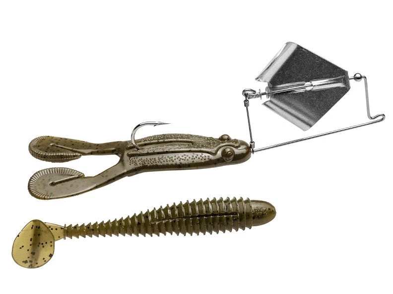 An innovative buzzbait engineered in collaboration with arguably the most proficient skipping anglers of all time, the Strike King Skipping Buzzbait was designed by Major League Fishing pro Andy Montgomery with features specifically aimed at targeting out-of-reach fish in places few baits will go. Pre-rigged in the package with a Strike King Rage Toad, this game-changing buzzbait features an internal head design with bait keeper barbs that secure the body of the toad directly to the frame. Included with a spare matching Rage Swimmer, anglers are equipped with two forage options that provide a broad surface area ideal for skipping under docks and overhanging cover. Built with a heavy wire construction to direct fish away from cover, the Strike King Skipping Buzzbait is reinforced so it doesn’t bend out of shape after multiple fish catches.
