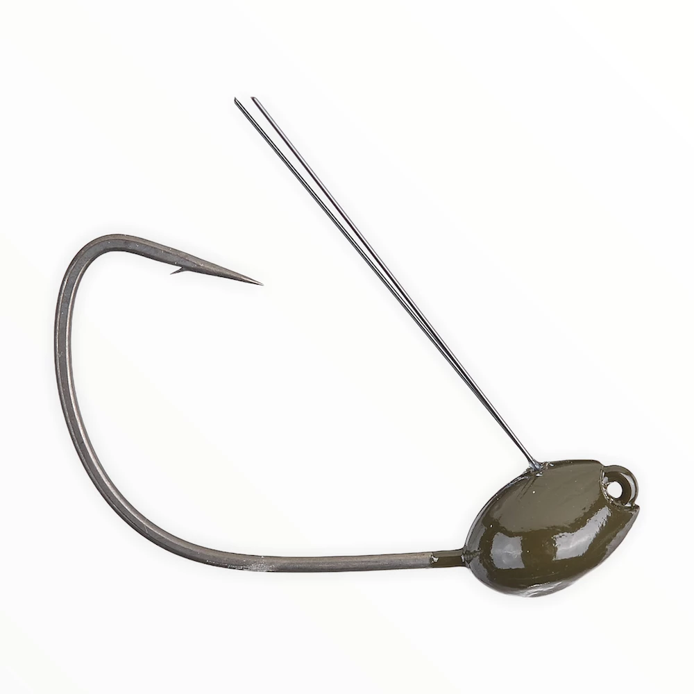 Is a vast improvement over other wacky jigs. The nickel/titanium weed guard is the first indication that Gamakatsu’s raised the bass fishing bar. This weed guard is small but mighty as it effectively clears hazards yet maintains its shape and rigidity under the most demanding use. The jig head is an improvement as well. Better designed to resist snags the hook eye is recessed to prevent getting hung-up in structure. Even the hook is different, a custom addition that’s based on a shiner hook but modified for the Jig Head Wacky. The result is a much higher ratio of hook-ups and landed fish than any other comparable brand.