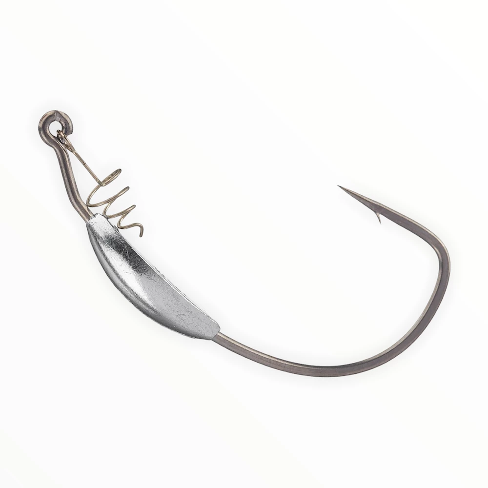 Bass fishermen who desire a smooth weighted finish (prevents snags on the weighted portion of the hook) and hardcore hook durability came to the right place. Ken Iyobe designed the ultimate weighted fishing hook – one that can be used in a variety of cover-structure areas. Of course, as with all Hayabusa Fishing products, bass anglers can expect only the sharpest, engineered hook point. Whether a fishermen uses soft plastic swimbaits, flukes, premium stick baits, creature baits … Any kind of desirable soft plastic bait can be used with this evolved weighted fishing hook design.