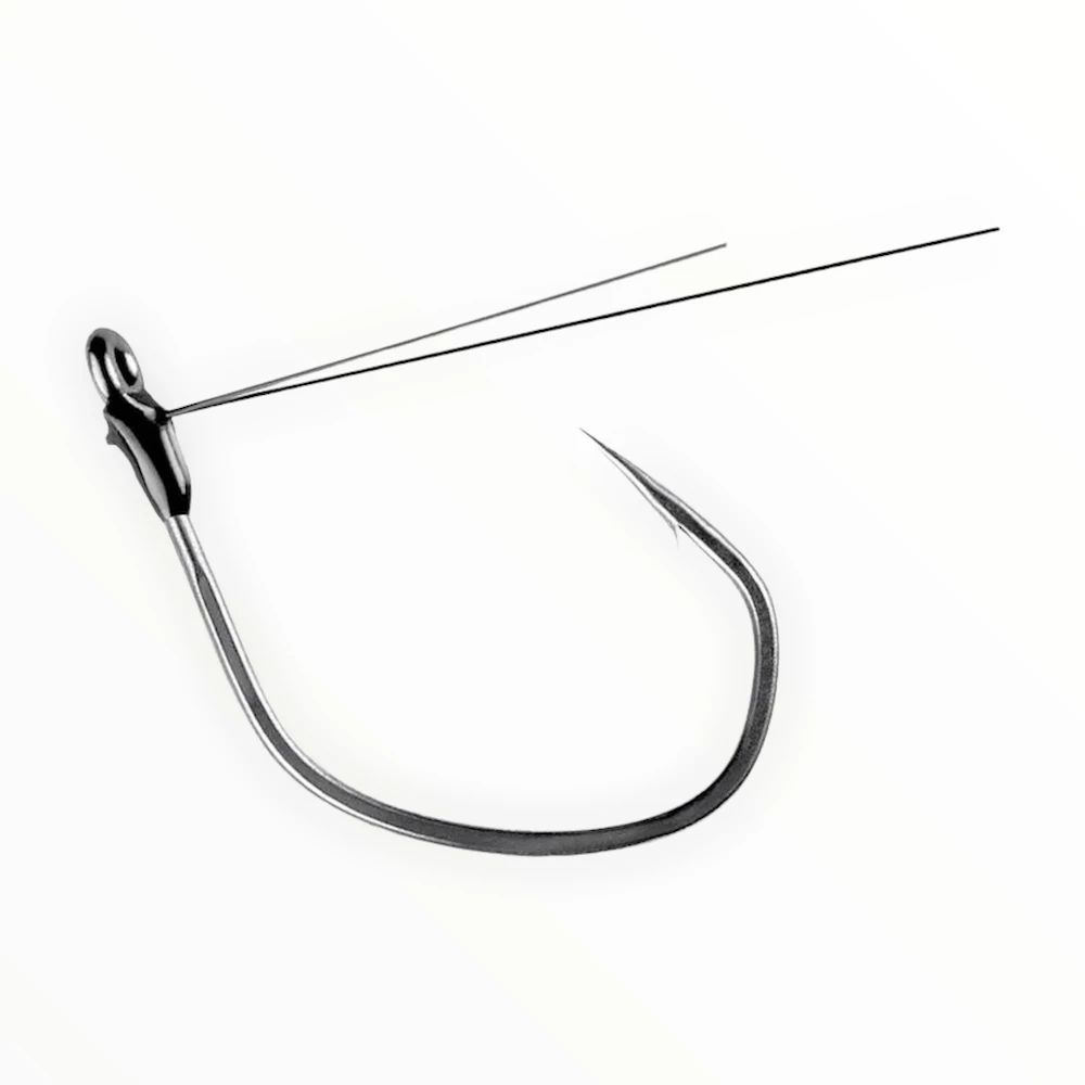 Includes a short shank and monster gap for superior hooking abilities. Made from Zo-Wire™ which makes hooks 15% stronger by diameter over other high carbon steel hooks. Also includes Silky Gray finish for superior penetration and Titanium weed guards for weedless presentations.