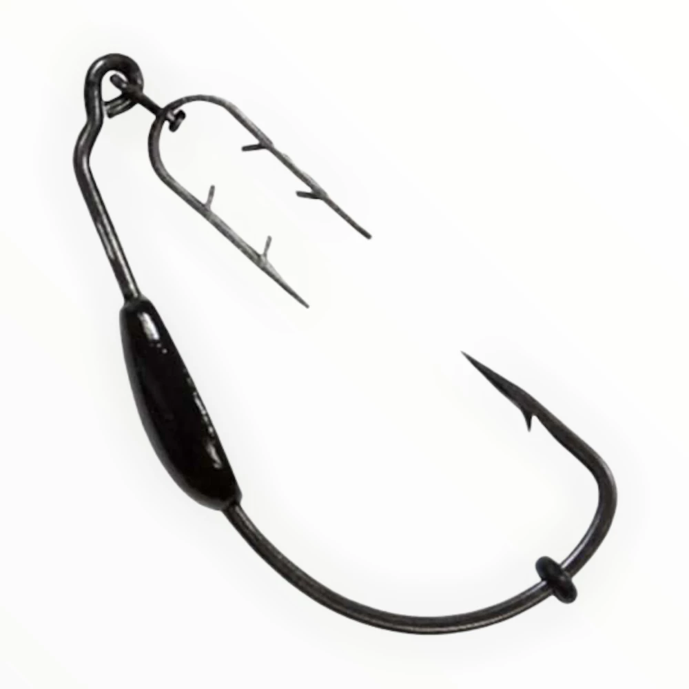 Heads up if you fish swimbaits or other plastics in heavy cover! The unique Z-Man® EZ KeeperZ™ Weighted Hook helps eliminate the frustration of your soft plastic bait getting torn up or sliding out of place, so you can keep those missed opportunities to a bare minimum. Its front end features a patent-pending keeper consisting of a double-barbed, U-shaped stainless clip that holds ElaZtech, conventional plastics, and Gulp!® securely in place, properly aligned at all times. In addition, a small rubber O-ring at the hook bend prevents the bait from sliding up the shank—so your bait remains intact, with the heavy-duty, black-nickel hook always positioned for a solid set. 3 pack.
