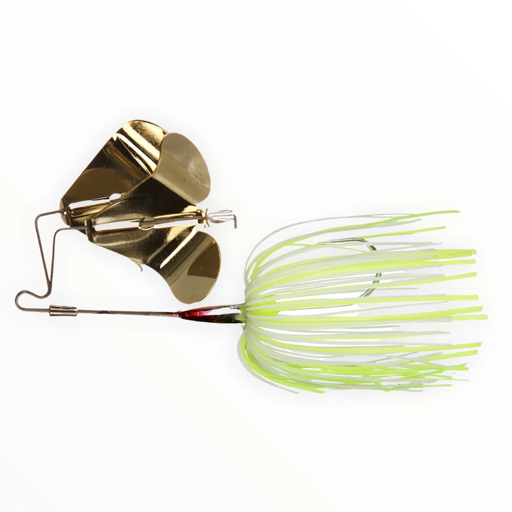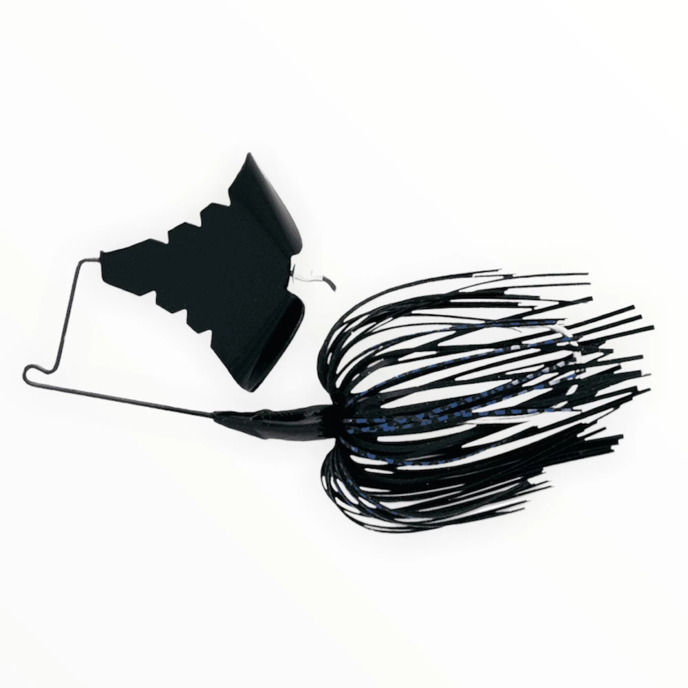 Wings cupped greater than 90 degree for a huge splash and turned rivet for extra sound this awesome topwater bait is a must-have for every bass angler. Upturned nose on flat head allows it to walk over cover. Long shank hook to increase hook-ups with QuickSkirt changeable premium silicone skirt and painted, gold or nickel plated exclusive serrated blades.