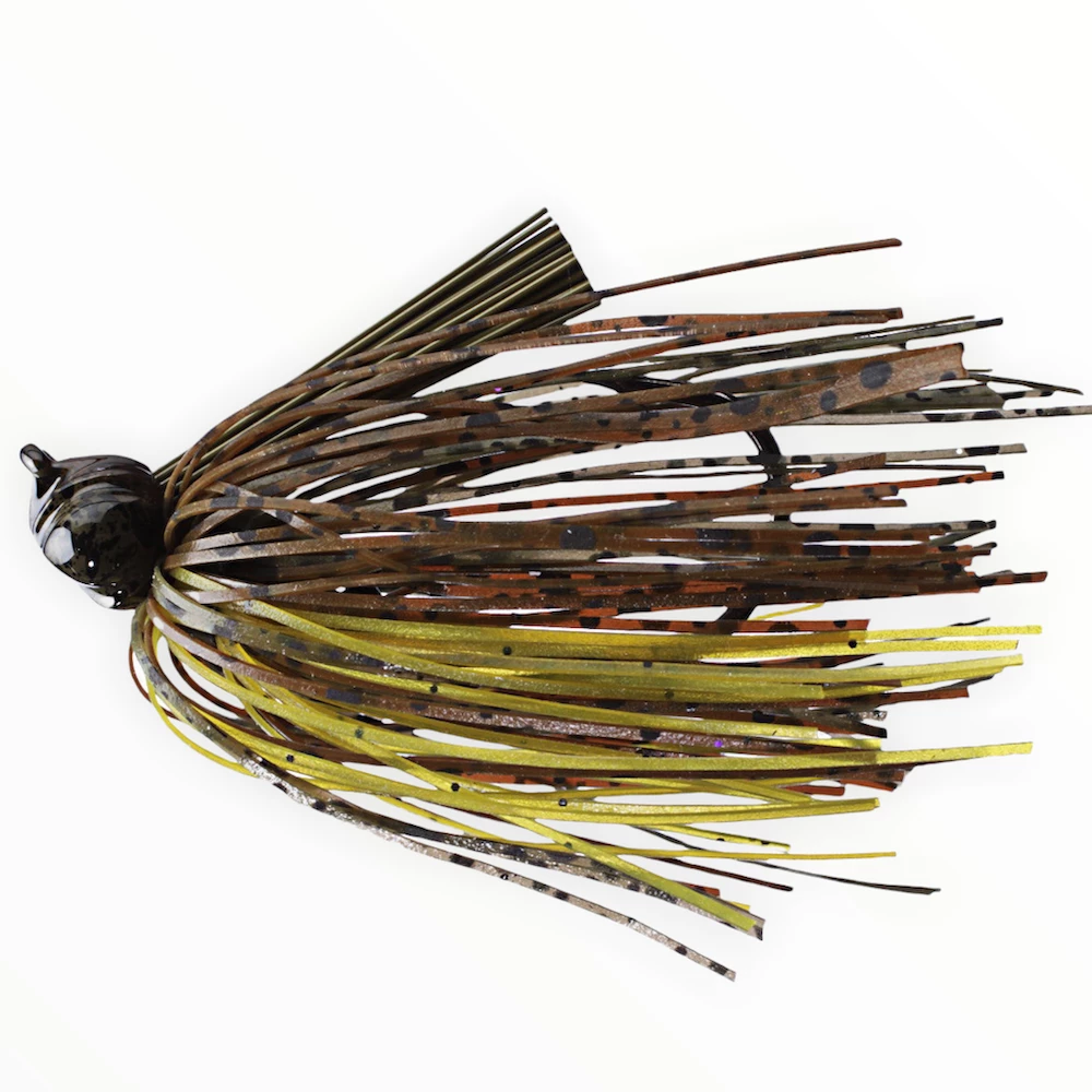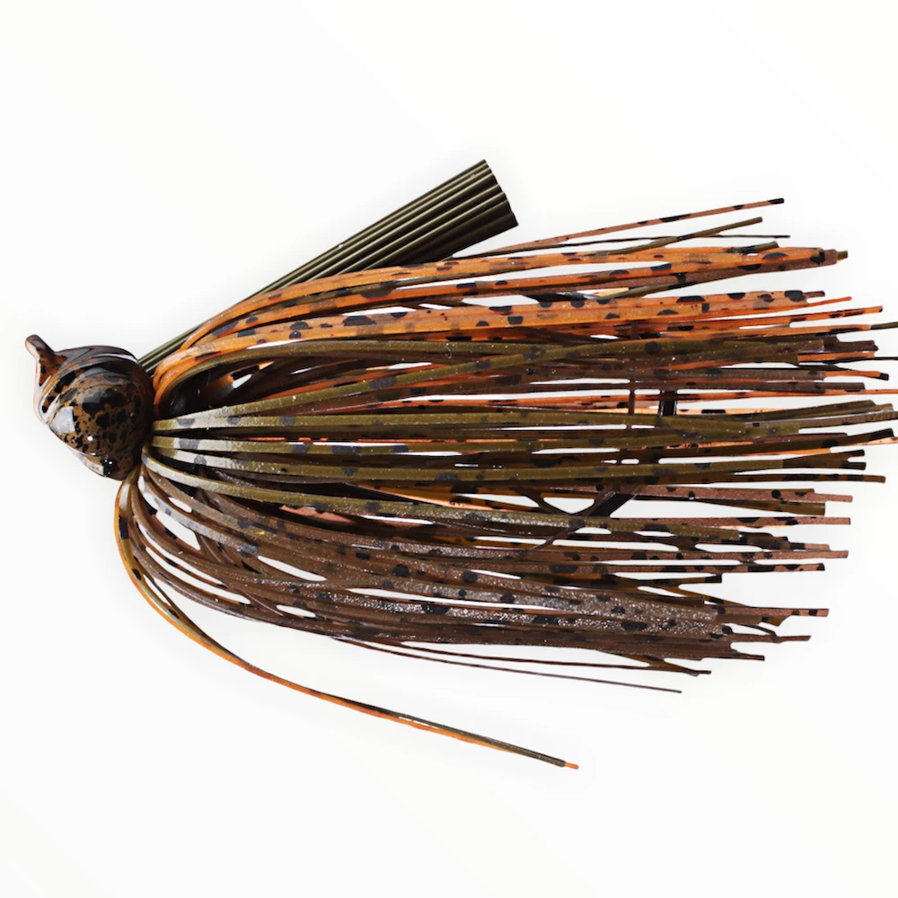 Part of the Pacemaker series, the Flatline Football Jig has a custom oversized 30-degree hook that allows for better hook sets and a larger weed guard that helps to make the bait more effective in cover. The head shape allows for a very stable upright presentation that resit rolling over while on the bottom or in contact with heavy cover.