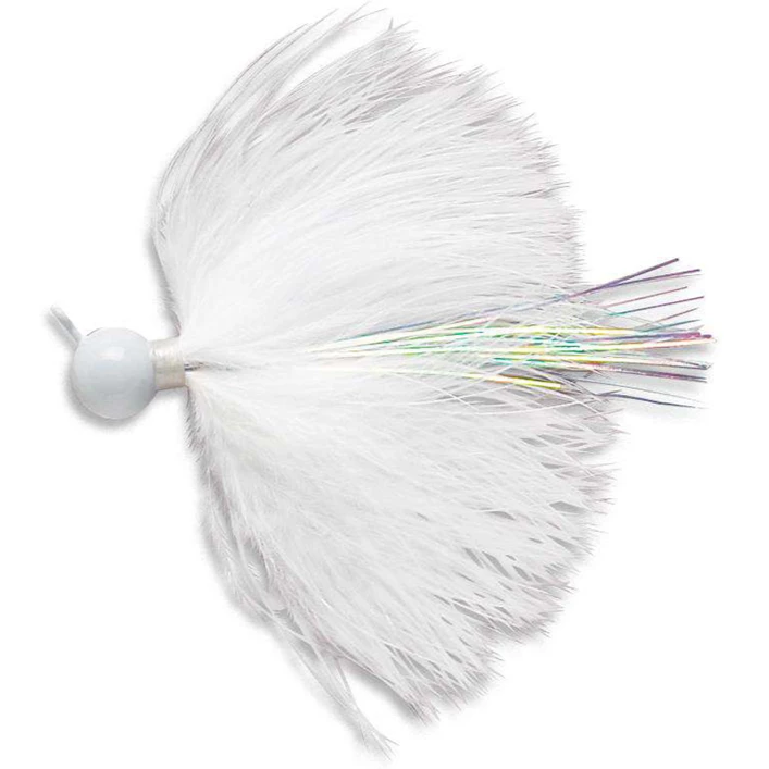 VMC® Marabou Jig features a Power Gap hook made of high-carbon steel. The 60 degree rotated jig eye allows greater control. Natural hair-dressing imparts natural, lifelike action while the marabou fibers on the jig reflect light for added attraction, to create the perfect marabou jig. One piece per pack.