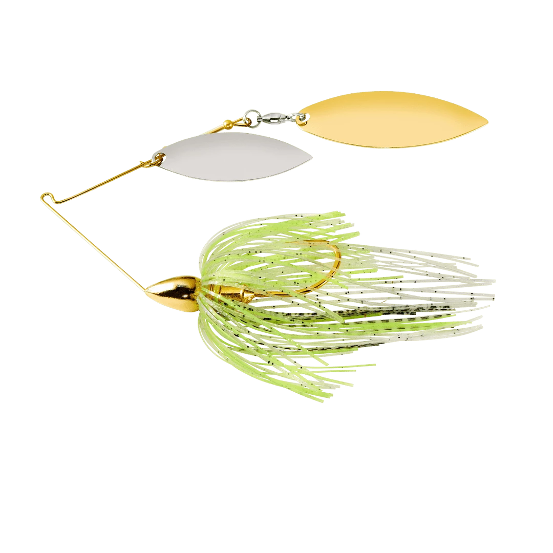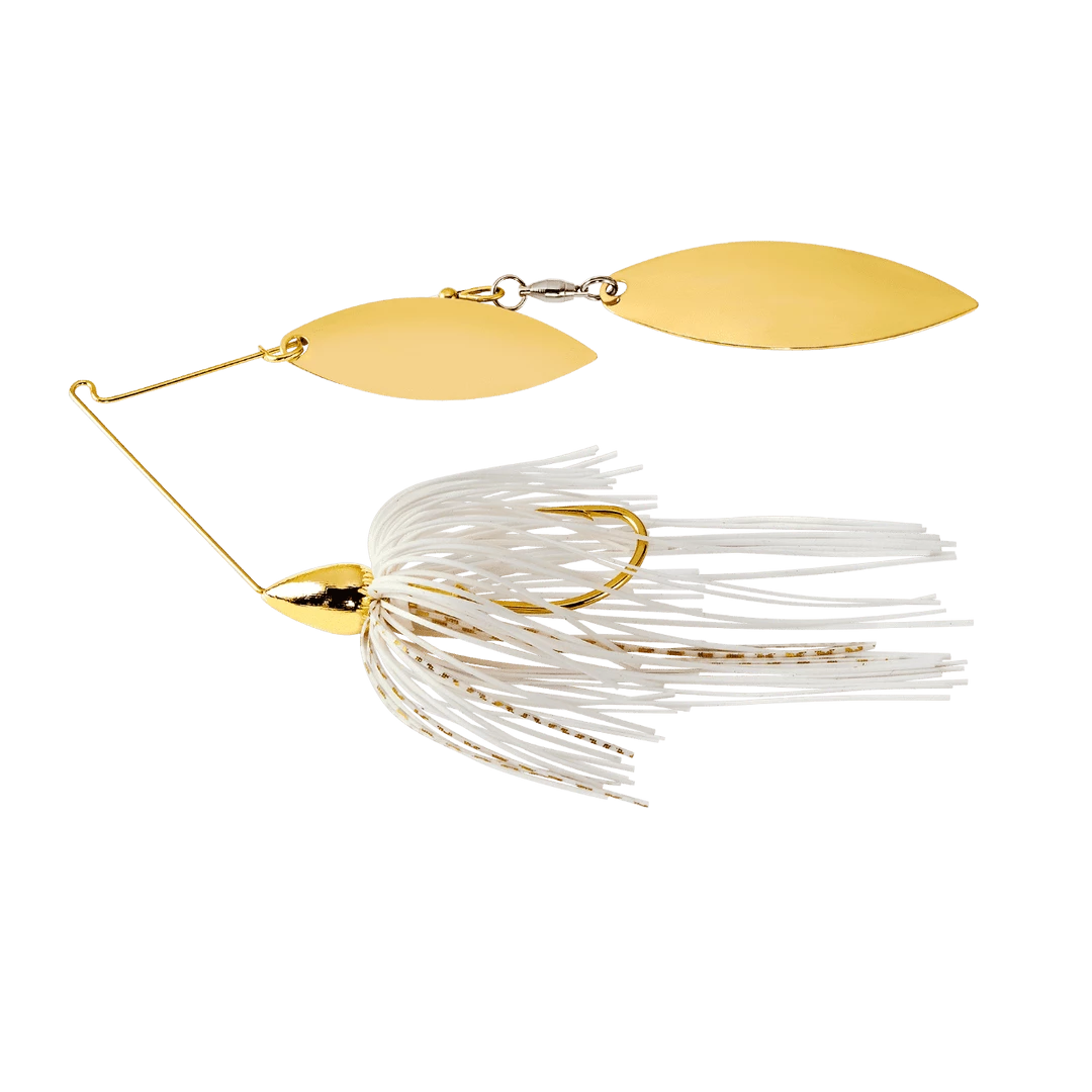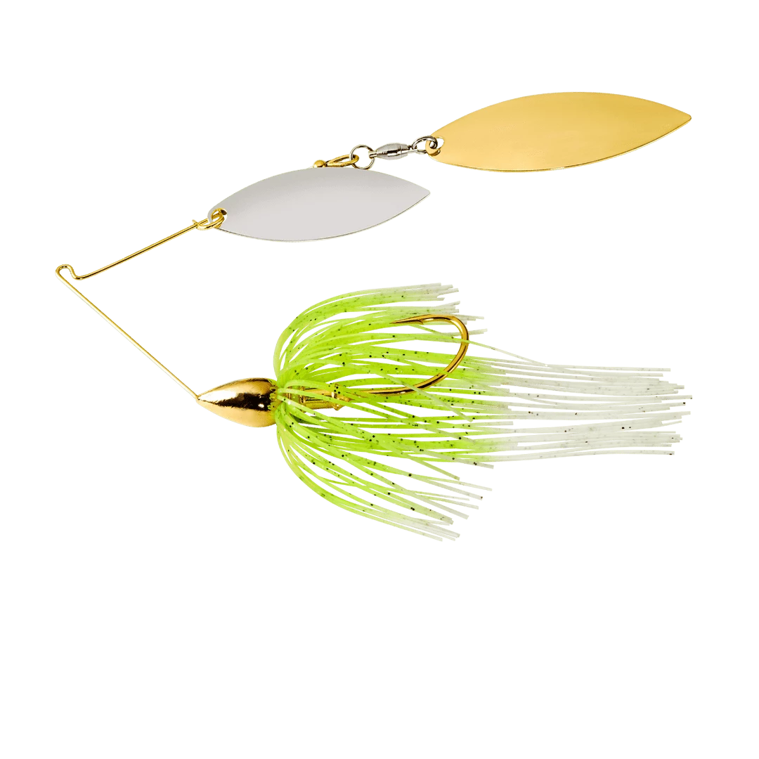 The Screaming Eagle weight distribution allows it to be burned through the water as fast as possible without rolling over, hence the name. This model features a gold frame, willow leaf blades, and color patterns best suited for stained water.
