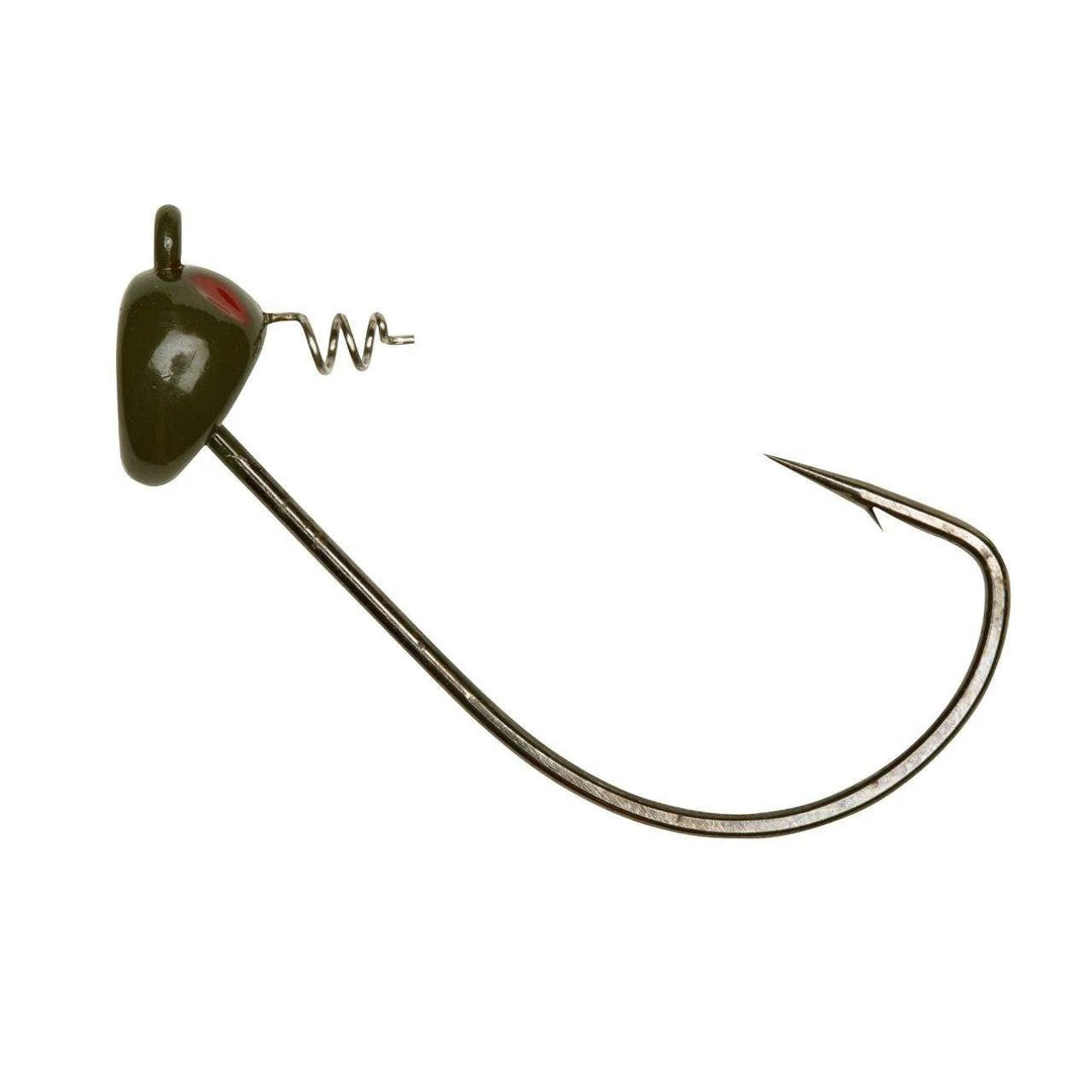 You’ve got to have the right tools to do the job right, and for power shakin’, this is the right tool. Power shakin’ takes shaky head fishing to the next level, and the Pumpkin Head jig is the foundation of that technique. The extended lure-holder spring makes rigging easy, and the flat head and horizontal line tie prompts the jig to stand straight up on bottom. Rigged with a worm or minnow-shaped plastic it mimics a fish or other invader feeding on bottom; rigged with a soft plastic craw it stands up in a defensive position.