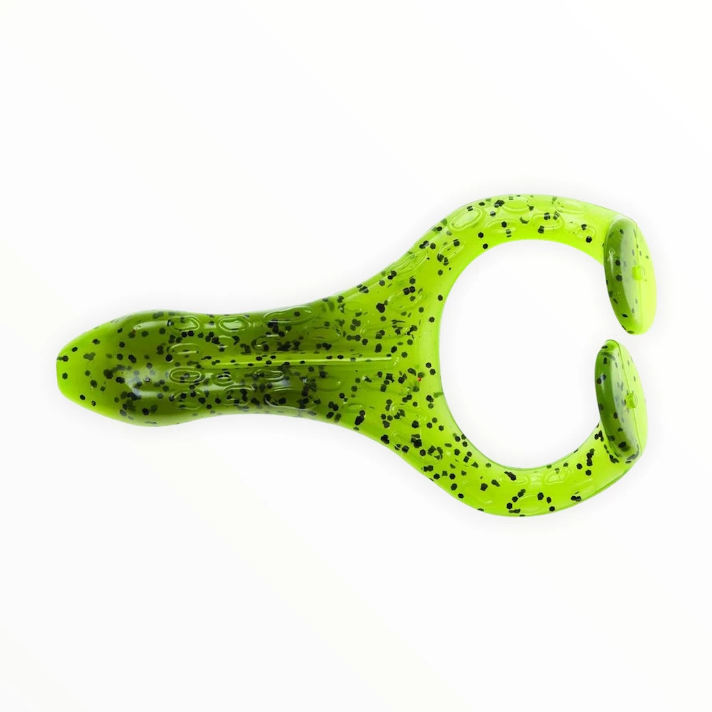 Topwater fishing fanatics, rejoice! Our dynamic Hard Leg FrogZ produce a lively, paddle foot swimming action. Extremely buoyant–floating even when rigged with the largest of magnum-sized hooks–this four-inch super amphibian is virtually indestructible and swims easily through the thickest of surface cover.