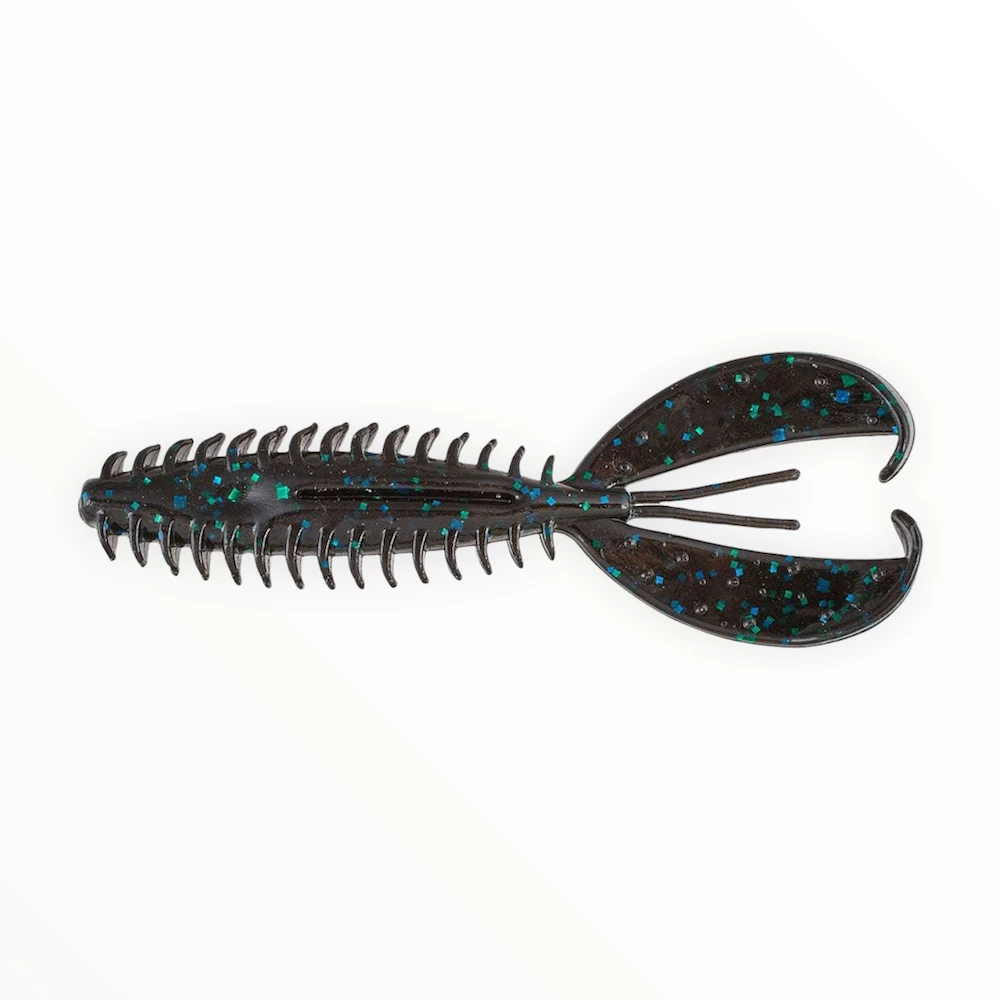 The Z-Craw takes an elongated body with forward-facing ribs and adds hook pockets top and bottom as well as fluttering claws, all in a streamlined package designed to slip into the heaviest cover with ease while also pulsating with the sound and fury of an angry crawfish.